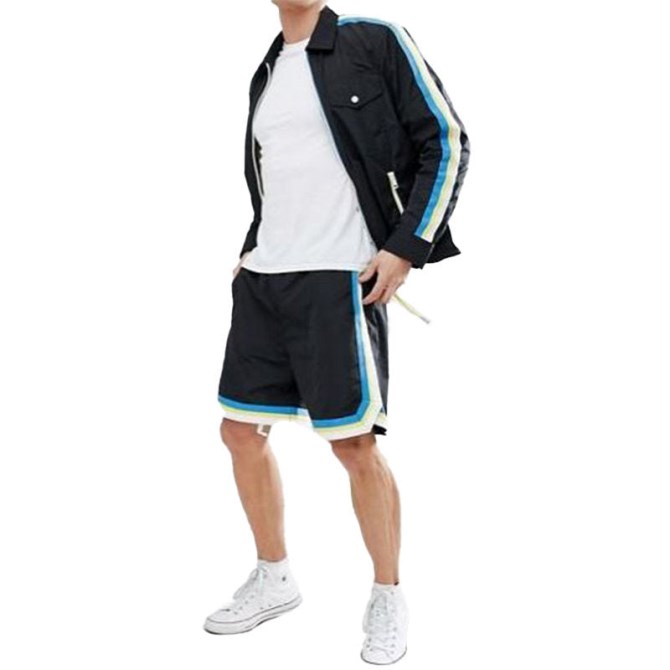 Verziert Mit Weißen, Blauen Und Gelben Ziernähten Und Buntem Aufdruck
