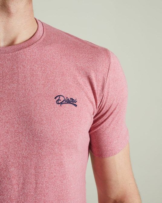 Melange-Basic-T-Shirt Aus Baumwollmischung Mit Diesel-Stickerei Auf Der Brust Und Gewebtem Diesel-Label Am Saum. Das Model Trägt M. Es Wird Empfohlen, Bei Ihrer Regulären Größe Zu Bleiben. 50 % Baumwolle, 50 % Polyester.
