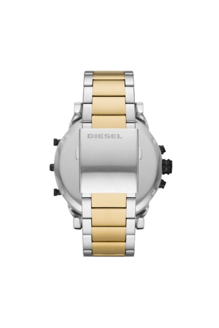 GARANTIEDie 57-mm-Mr. Daddy 2.0-Uhr Von Diesel Verfügt über Ein Schwarzes, Strukturiertes Zifferblatt Mit Sonnenschliff Und Indizes, Ein Zwei-Zeiger-Werk Und Ein Zweifarbiges Edelstahlarmband.