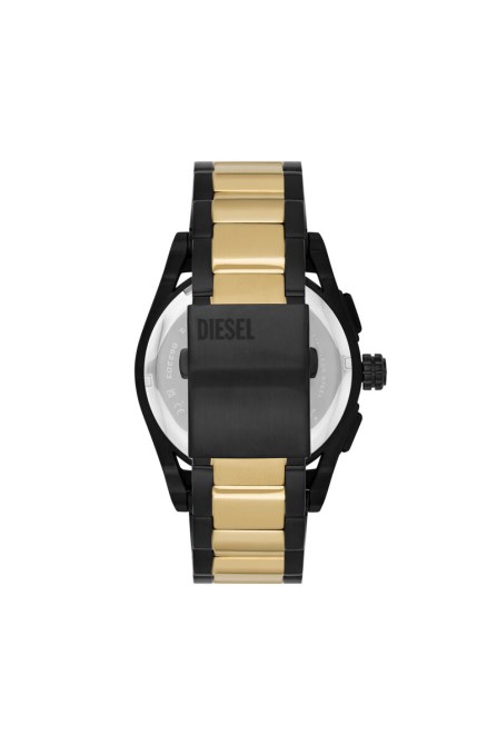 GARANTIEDie 48-mm-Timeframe-Uhr Von Diesel Verfügt über Ein Schwarzes Zifferblatt Mit Sonnenschliff, Ein Chronographenwerk Und Ein Zweifarbiges Edelstahlarmband.