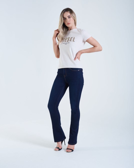 Hohe Leibhöhe, Geformte Oberschenkel Und Ein Klassischer Bootcut-Saum. Weicher Premium-Stretch-Denim. Mit Gesäßstraffung Und Bauchstraffungseinsätzen Für Die Perfekte Form. Hosenschlitz Mit Reißverschluss, Beschläge Der Marke Diesel. Das Modell Trägt Größe 8/R Und Ist 1,67 M Groß. Es Wird Empfohlen, Dass Sie Bei Ihrer Normalen Größe Aus 73 % Baumwolle Bleiben. 23 % Polyester. 2 % Viskose. 2 % Elasthan.