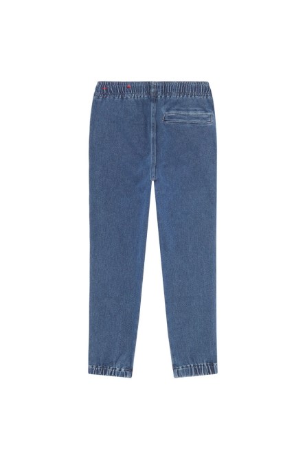 In Einem Dunkelblauen Farbton Kombiniert Diese Hose Für Jungen Den Komfort Einer Jogginghose Mit Dem Look Von Denim. Sie Haben Einen Gummizug An Taille Und Knöcheln Sowie Ein „ovales D“-Logo Aus Metall Auf Der Vorderseite.