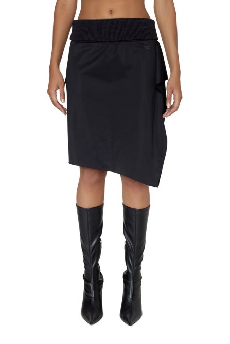 Dieser Schwarze Rock Mit Kordelzugbund Aus Rippstrick Besteht Aus Glänzendem Stoff Und Hat Eine Asymmetrische, Drapierte Silhouette Mit Ungesäumtem Saum. Die Vorderseite Ist Mit Dem „Oval D“-Emblem Bestickt.