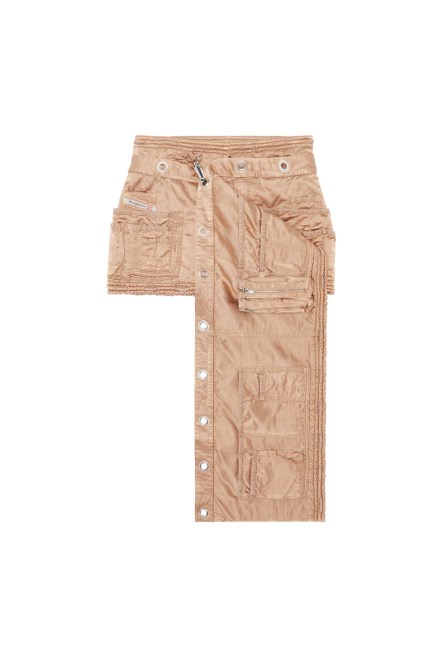 Dieser Minirock Aus Der F/S 22-Show Besteht Aus Seidigem Satin Mit Gestepptem Futter. Es Ist Von Archivalischer Arbeitskleidung Inspiriert Und Hat Eine Lange Taschenbahn, Die Sich Zu Einer Asymmetrischen Silhouette Und Einem Verblassten, Stückgefärbten Finish Entfaltet. Die Dicken Metallösen Und Der Hakenverschluss Unterstreichen Das Praktische Gefühl.
