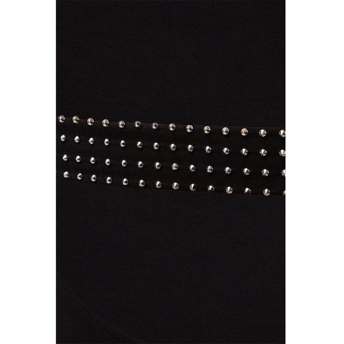 Das Slip-On-Stück Hat Einen Offenen Rücken, Der Mit Einem Band Aus Glitzernden Metallnieten Geschmückt Ist