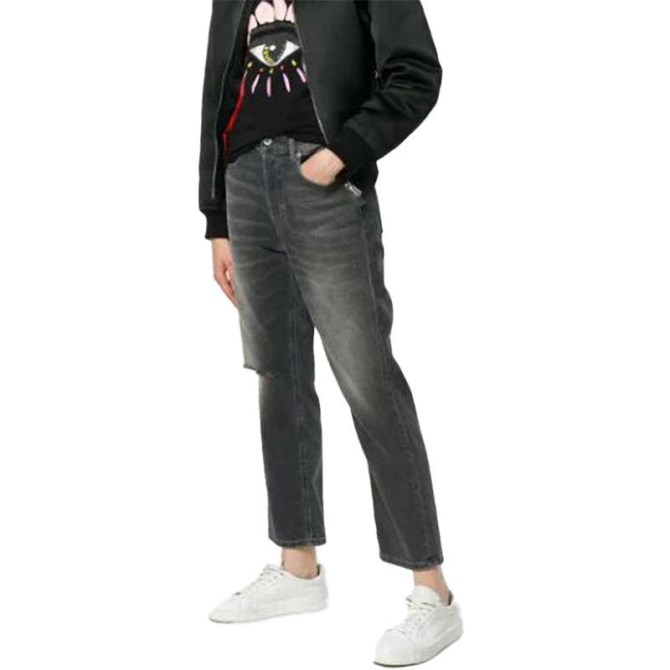 Gerader Schnitt Mit Normaler Leibhöhe Und Konstruktion Inspiriert Von Vintage-Denim Hergestellt Aus Fix-Denim In Behandelter Schwarz/Dunkelgrau-Waschung Regular Boyfriend Regular WaistFadedDistressed Stretch Treated 5 Taschen (2 Hand-, 2 Gesäß- & 1 Münzfach)KnopfverschlussMaschinenwaschbarFarbe: Schwarz/Dunkelgrau