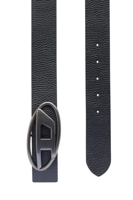 Wendbarer Ledergürtel Mit Einer Glatten Und Einer Genarbten Seite. This Herren-Accessoire Hat One Quadratische Spitze Und Wird Mit Einer Ovalen D-Logo-Schnalle Aus Metall Geschlossen.