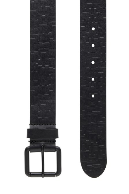 Herren-Ledergürtel Mit Allover-Verzierung Mit Einem D Grad Diesel-Monogrammmotiv. Wird Mit Einer Rollschnalle Befestigt.