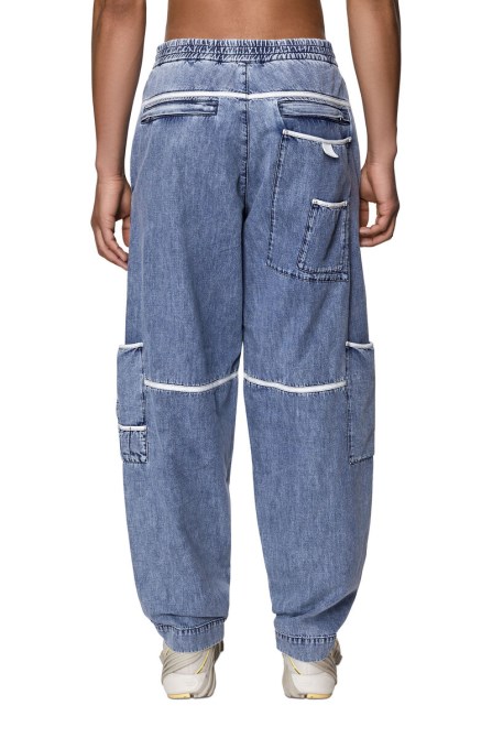 Lockerer Schnitt Mit Normaler Taille Und Geradem Bein. Das Multi-Pocket-Design Aus Leichtem Stoff Ist Von Archivalischen Workwear-Jeans Inspiriert Und Hält Mit Weißen Bindedetails Einen Modernen Touch. This Hellblaue Waschung Mit Einem Grafischen, Dreidimensionalen Look Ist Aus Einem Leichten Stretch-Stoff Gefertigt Und Mit Kontrastierenden Weißen Einfassungen Entlang Der Zahlreichen Taschen Und Nähte Versehen.