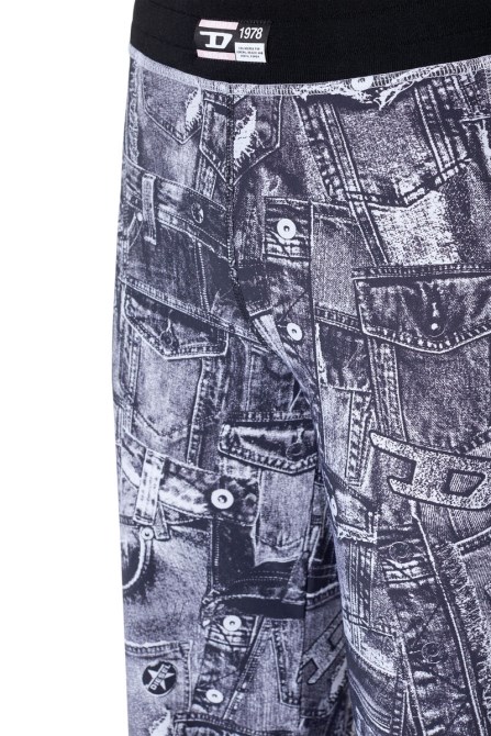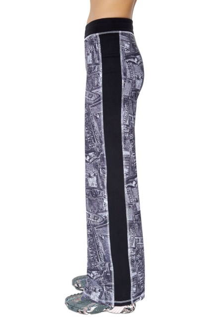 This DIESEL SPORT Trainingshose Für Damen Ist Teil Der FW22-Kollektion Und Besteht Aus Elastischem Kettenstrick, Der Mit Einer Bricolage Aus Jeanstaschen Bedruckt Ist. Sie Haben Eine Hohe Leibhöhe Und Scheuerfreie Nähte. Die Gerippte, Baumwollartige Taille Und Die Seitenbänder Sind Mit Dekorativen Decknähten Versehen.