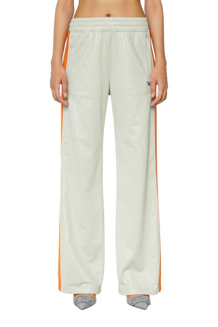 Trainingshose Für Damen Aus Glänzendem Kettenstrick Mit Einem D Grad-Logodruck, Der Sich Allmählich In Der Größe ändert. Sie Sind Mit Baumwollgaze Gefüttert Und Haben Ein Normales Bein, Das Zum Knöchel Hin Ausgestellt Ist, Und Paspelierte Seitenbänder. Logo-Patch Auf Der Vorderseite.