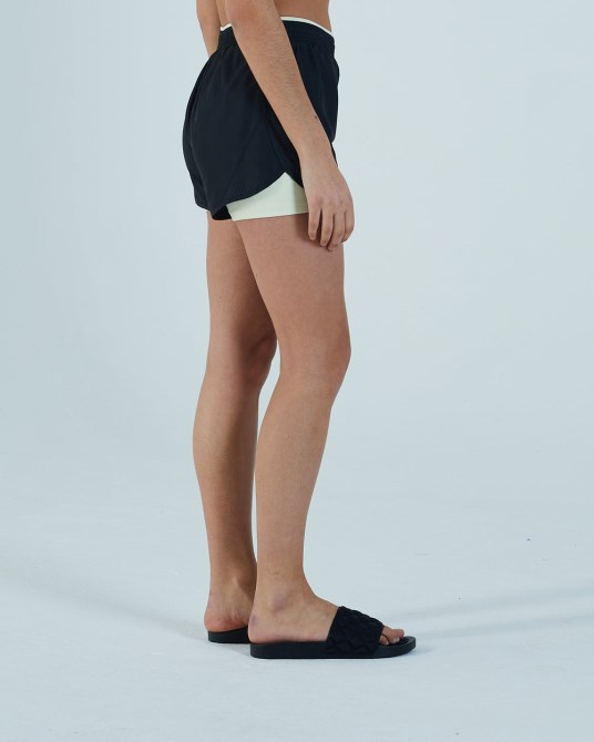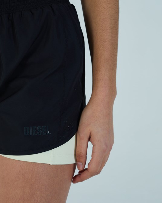 Leichte Polyester-Shorts Mit Kontrastfarbener Innenhose. Innenshorts Mit Versteckter Tasche Am Bein. Elastischer Bund Mit Innenliegendem Kordelzug. Kunstwerk Aus Silikonkautschuk.