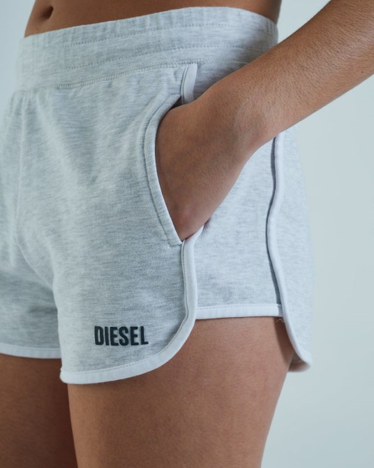Dehnbare Fleece-Trainingsshorts Mit Kontrastierenden Paspeln. Elastischer Bund. Gummidruck 'Diesel'. Modell Trägt XS. Es Wird Empfohlen, Dass SIE Bei Ihrer Normalen Größe Bleiben. 95 % Baumwolle, 5 % Elasthan.