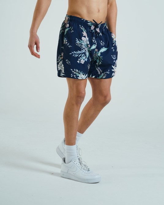 Bade- Und Lounge-Shorts Für Herren Aus Einem Schnell Trocknenden Stoff Mit Blumendruck. Elastischer Bund Und Kordelzug. Logo-BadgeModel Trägt M. Es Wird Empfohlen, Bei Ihrer Normalen Größe Zu Bleiben.