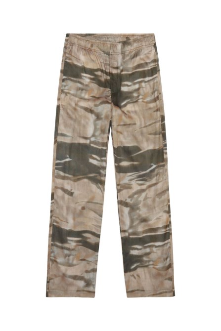 Herrenhose Aus Fließendem TENCEL Lyocell-Twill, Digital Bedruckt Mit Camouflage-Design. SIE HABEN EINE REGULÄRE PASSFORM UND VERFÜGUNGEN ÜBER EINEN ELASTISCHEN BUND UND TASCHEN.