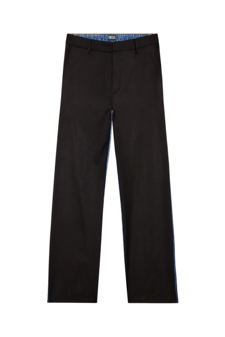 Diese Herrenhosen Sind Eine Mischung Aus Formellen Hosen Und Jeans. Sie Sind Am Bein Locker Geschnitten Und Haben Eine Twill-Vorderseite Aus Einer Schurwollmischung Und Eine Denim-Rückseite Mit Einem Roten Gestickten „D“-Logo.