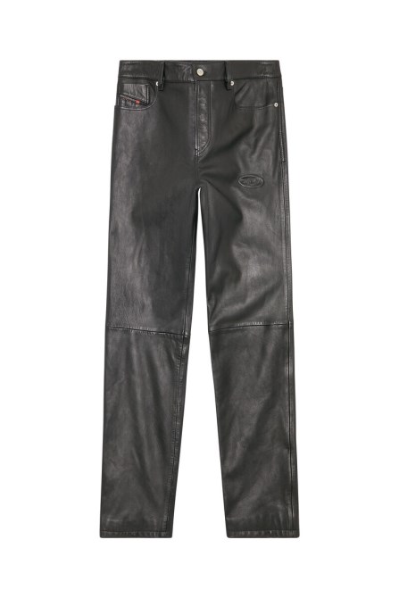 This Herrenhose Ist Eine Mischung Aus Biker-Styles Und Jeans Und Hut Eine Reguläre Passform Aus Geschmeidigem Schwarzem Leder In Einer Five-Pocket-Silhouette. Das Logo In Used-Optik Mit Prägeeffekt Entsteht Durch Eine Unter Dem Leder Eingefügte Metallplakette.