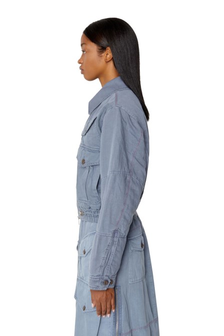 Damenjacke Aus Geflammtem Twill Aus Einer Leinenmischung. This Gepolsterte Model Zeichnet Sich Durch Praktische Taschen Im Military-Stil Aus Und Lässt Sich Öffnen, Um Ein Passendes Reißverschluss-Panel Mit Einem Kragen Im Bomber-Stil Zu Enthüllen. Die Regular-Fit-Silhouette Lässt Sich An Den Ärmelabschlüssen Und Der Taille Verstellen.