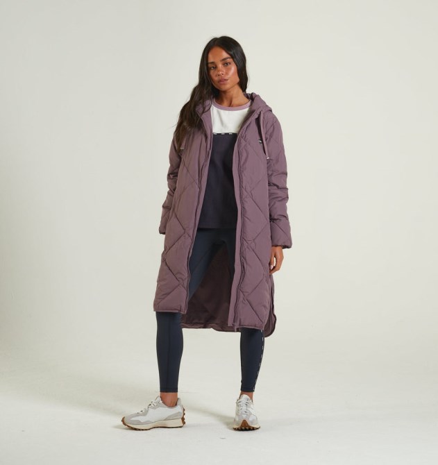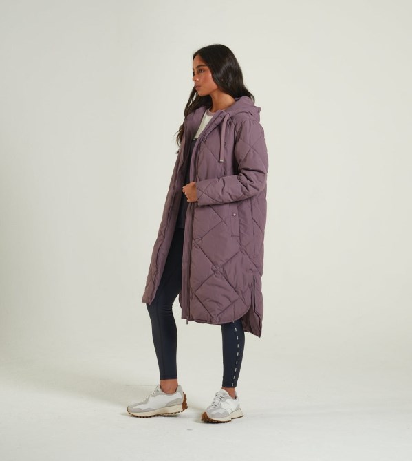 Langgefütterter Mantel Mit Rautensteppung Und Lockerer Passform. Kleines Metallabzeichen Auf Der Linken Brust Des Trägers