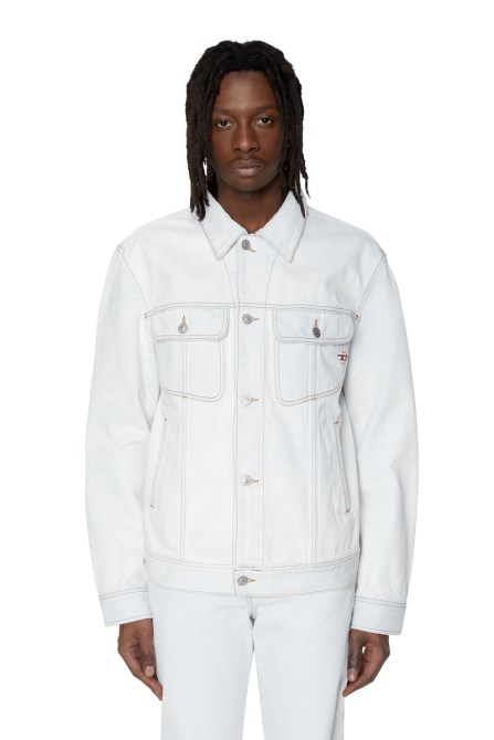In Partnerschaft Mit Der Tom Of Finland Foundation (toff) Ist Diese Truckerjacke Aus Festem Denim In Einer Hellgrauen Waschung Gefertigt, Die Eine Zeitlose Einstellung Ausgestrahlt, Und Mit Dem Grafikaufnäher Der Kapsel Und Einem Gestickten Diesel-d Versehen.