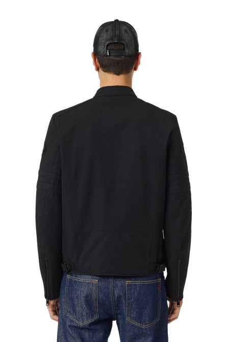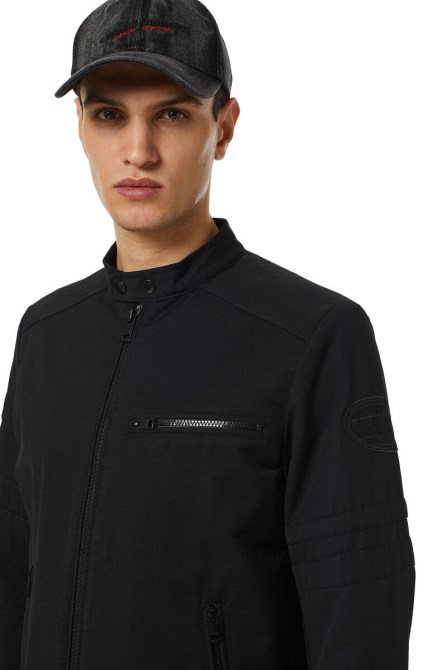 Bikerjacke Mit Normaler Passform, Aktualisiert Mit Einer Konstruktion Aus Baumwoll-Twill-Mischgewebe Für Einen Strukturierten Look. Die Schlichte Silhouette Verfügt über Einen Druckknopfkragen Und Verstellbare Saumschnallen, Die Mit Einem Ovalen D-Aufnäher An Jedem Ärmel Verziert Sind.