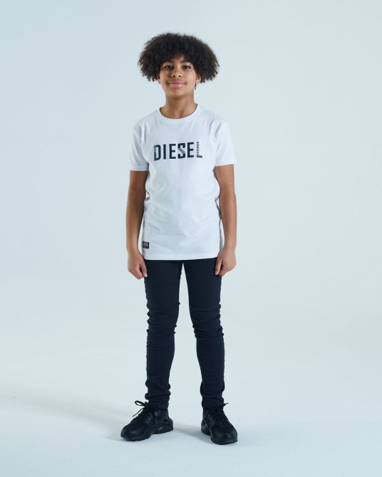 Jungen-Logo-Print-T-ShirtModel Ist 11 Jahre Alt Und Trägt Größe 11 Bis 12