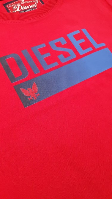Diesel Print T-ShirtRundhalsausschnitt, Normale Passform Mit Erhabenem Gummidruck Und Logoaufnäher