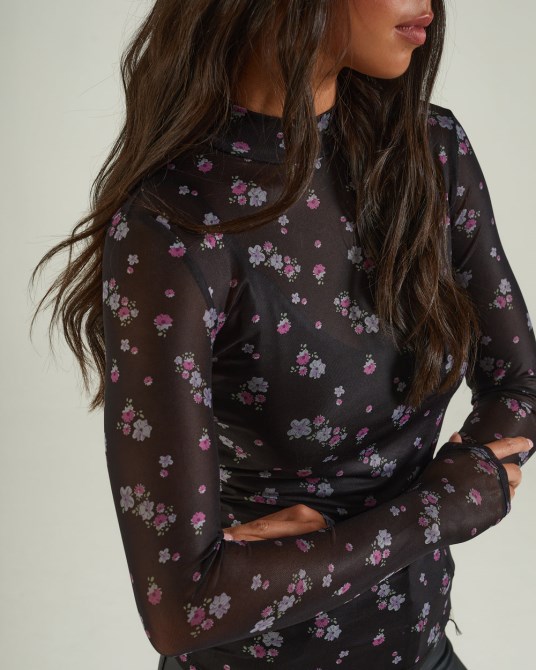 Ein Bedrucktes, Langärmliges Mesh-Oberteil Mit Stehkragen. Darunter Trägt Das Modell Eine Schwarze Weste, Die Separat Erhältlich Ist. Abgerundet Mit Einem Diesel-Metallabzeichen Am Saum. Das Modell Trägt Größe XS. Dieses Kleidungsstück Fällt Der Größe Nach Aus. 100 % Polyester
