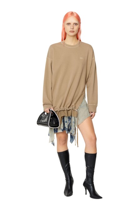 Dieses Baumwollkleid Hat Eine Lockere Sweatshirt-Silhouette Und Einen Chiffonbesatz Mit Einem Trompe-l'oeil-Print Aus Marmoriertem Denim. Der Besatz Erstreckt Sich Von Einem Mehrlagigen Saum, Der Auf Einer Seite Geschlitzt Ist Und Mit Einem Kordelzug Befestigt Wird. Ein Gesticktes „ovales D“-Logo Ziert Die Brust.