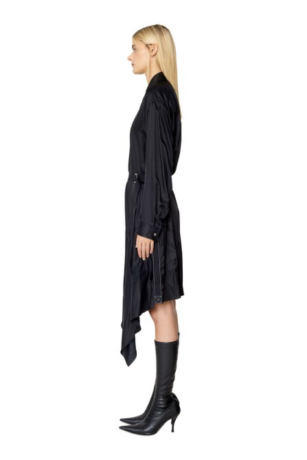 Weites Kleid Aus Viskose-Seidensatin Mit Asymmetrischem Volanteinsatz Am Saum. Ein Bandgürtel Im Military-Stil Reguliert Die Passform.