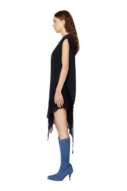 Locker Geschnittenes Pulloverkleid Aus Baumwolljersey. Das Pigmentgefärbte Modell Hat Einen Geteilten Kordelzugsaum Mit Chiffonbesatz Für Einen Asymmetrischen Look. Die Brust Ist Mit Dem Satz „by Diesel For Your Satisfaction“ Bestickt.