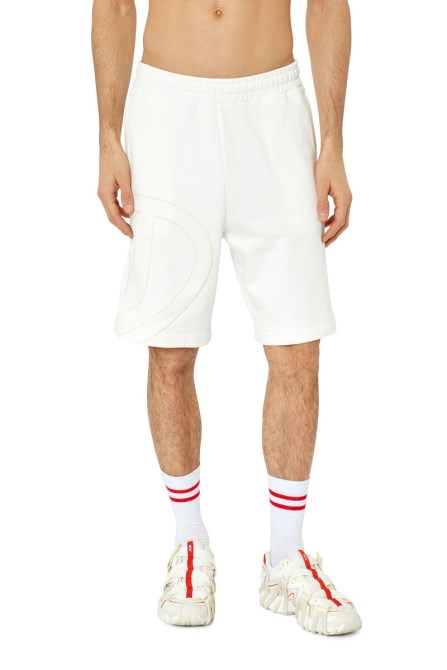 Regular-Fit Herren-Shorts Aus Baumwoll-Sweatstoff. Der Knielange Stil Wird Durch Eine Maxi-Oval-D-Cord-Stickerei An Der Seite Des Beins Aktualisiert. Abgerundet Mit Einem Flachen Internen Kordelzug Und Vier Taschen.