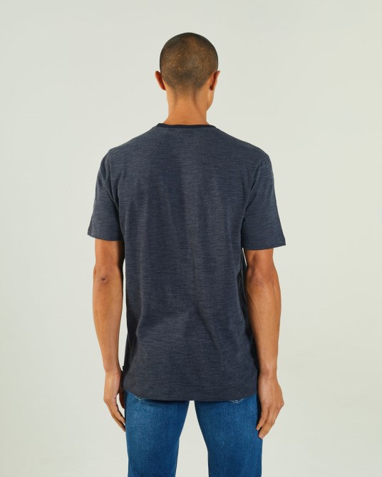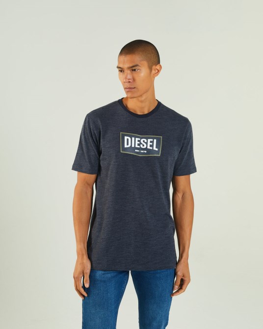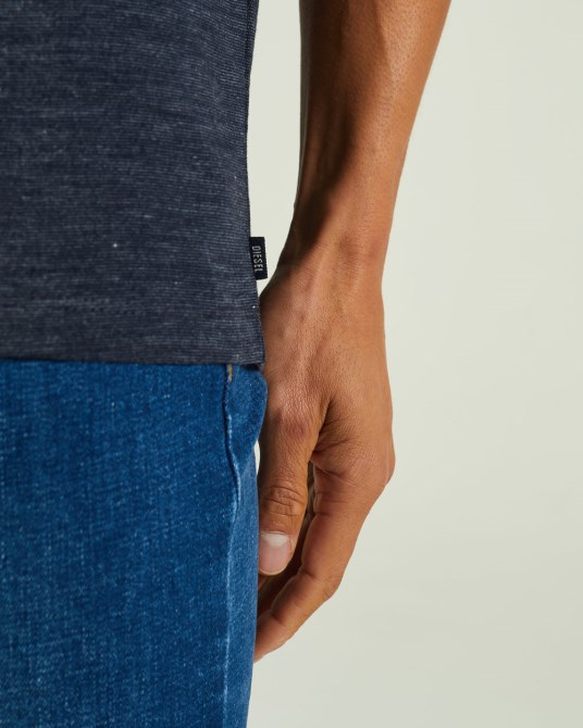 Gestreiftes Baumwoll-T-Shirt Für Herren Mit Kontrastrippen Am Ausschnitt. Kombinieren Sie Dieses T-Shirt Mit Einem Paar Unserer Diesel Jeans Für Einen Mühelosen Jeanswear-Look. Das Model Trägt M. Es Wird Empfohlen, Bei Ihrer Normalen Größe Zu Bleiben.