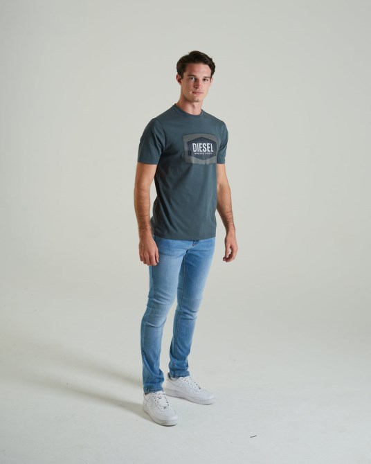 Baumwolljersey-T-Shirt Für Herren Mit Unserem Klassischen Motiv Mit Diesel-Tintendruck Und Einem Gewebten Flaggenetikett In Der Nähe Des Saums.
