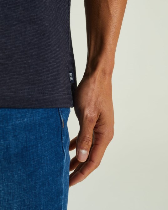Gestreiftes Herren-T-Shirt Aus Baumwolle Mit Gummilogo Auf Der Brust. Kombinieren Sie Dieses T-Shirt Mit Einem Paar Unserer Diesel Jeans Für Einen Entspannten Jeanswear-Look. Das Model Trägt M. Es Wird Empfohlen, Bei Ihrer Normalen Größe Zu Bleiben. 100% Baumwolle.