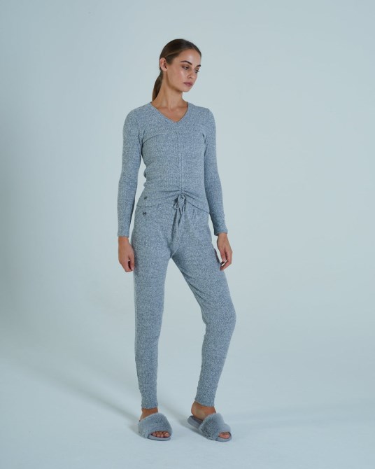 Weiche, Gerippte Lounge-Hose Mit Hohem Waste-Effekt, Elastischem Bund Und Kordelzug. Kombiniere Es Mit Dem Passenden Dani Lounge Top Für Einen Bequemen Und Stylischen Look.