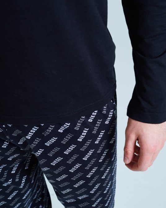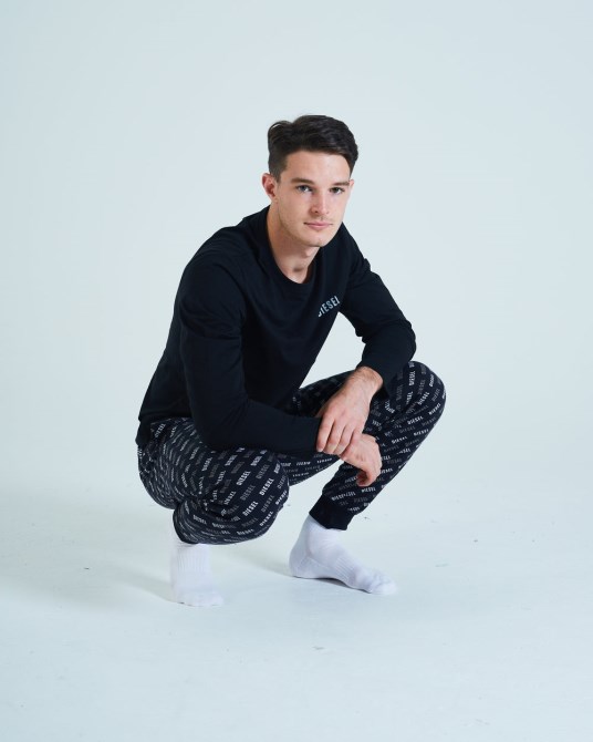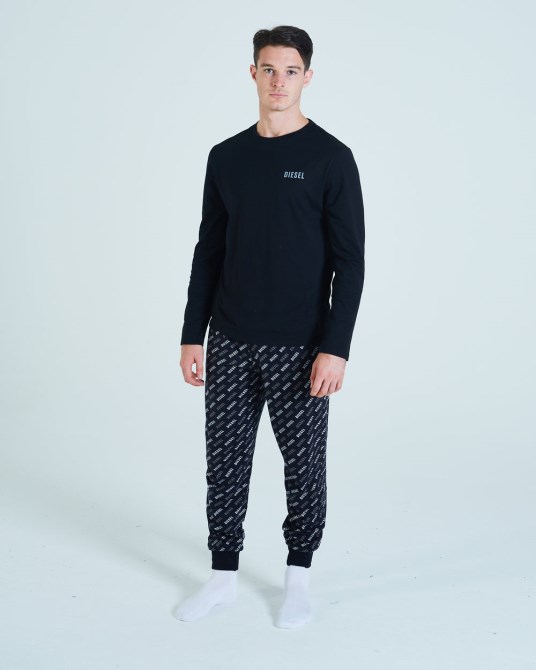 Superweiches Baumwoll-Lounge-Set Mit Unterteil Mit Diesel-Logo-Print, Bündchen Am Saum Und Kontrastfarbenem, Langärmligem Oberteil Mit Logo