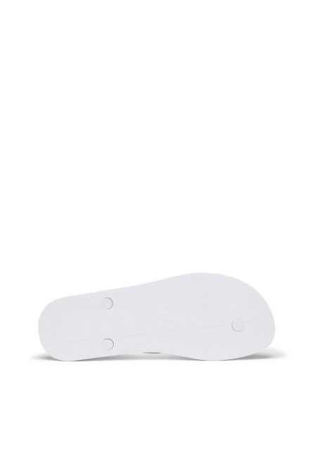 Diese Flip-Flops Haben Ein Geprägtes Logo Auf Dem Fußbett Und Griffige Diesel-Sohlen. Detailliert Mit Einem „Diesel Industry Denim Division“-Logo Auf Dem Riemen.