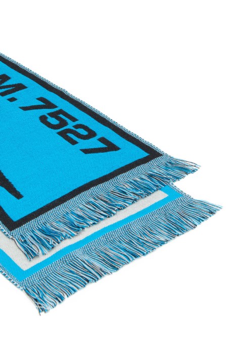 Dieser Blaue Herrenschal Besteht Aus Einer Warmen Wollmischung. Es Ist Mit Einem Jacquard-„Arctic Glow“-Logo Versehen Und Mit Langen Fransen Eingefasst.