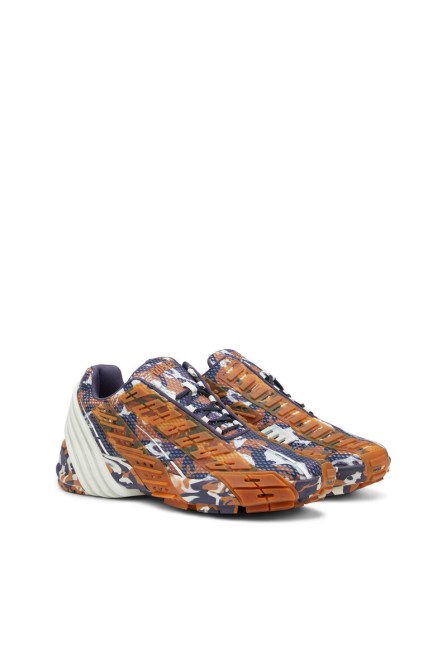 Dieser Innovative Herren-Sneaker Mit Aufgefrischtem Camouflage-Motiv Ist Aus Mesh Gefertigt Und Verfügt über Ein Außergewöhnliches Schnürsystem. Geformte Gummiüberzüge Sorgen Für Eine Klobige Textur Und Wickeln Sich Um Den Schuh Und Werden Teil Der Einzigartigen Industriellen Außensohle.