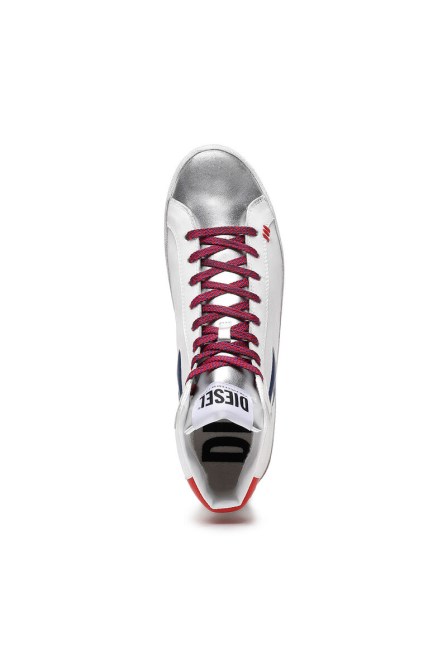 This High-Top-Sneaker Have Ein Obermaterial Aus Behandeltem Leder In Weiß Und Silber Mit Kontrastierenden Farbakzenten. Sie Haben Eine Sohle Mit Schmutzigem Effekt Und Sind Mit Einem Gepolsterten „D“-Branding Und Drei Markanten Nähten Auf Der Ösenleiste Versehen.