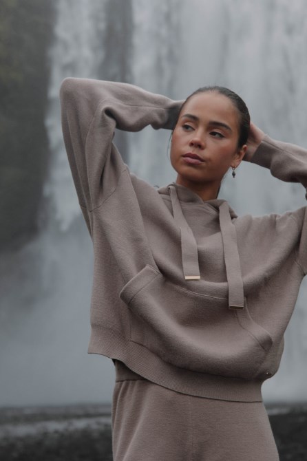 Kuschelige Strickhose Mit Eng Anliegenden Gerippten Bündchen, Elastischem, Geripptem Bund Und Groben Kordelzügen Mit Goldriegel-Finish. Kombiniere Es Mit Der Passenden Amilia-Hose Für Ein Super Bequemes Outfit.
