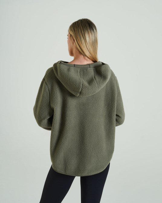 Schließfach Sitzende, Weiche Borg-Kapuze Mit Halbem Reißverschluss Und Abgerundetem Saumdetail. Markenzeichen Aus Gummi. Modell Trägt XS. Es Wird Empfohlen, Dass SIE Bei Ihrer Normalen Größe Bleiben. Dieses Kleidungsstück Hat Eine übergroße Passform. 100 % Polyester