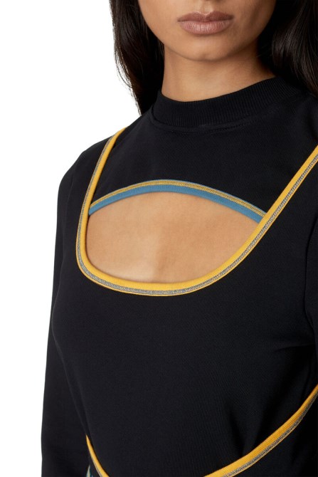 Damen-Sweatshirt Aus Loopback-Baumwolljersey. Es Hat Eine Schmale Silhouette Mit Lageneffekt, Einen Großzügigen Brustausschnitt Und Bänder, Die Sich Um Die Taille Wickeln. Kontrastierende Overlock-Besätze Unterstreichen Die Konstruktion. Abgerundet Mit Einer Ovalen D-Logo-Stickerei.