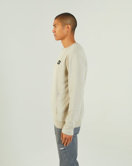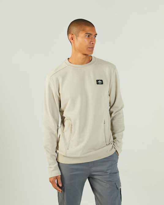 Loopback-Fleece-Sweatshirt Aus Baumwolle Für Herren Mit Sichtbaren Silbernen Reißverschlüssen, Coolen Nähten Und Einem Gewebten Outdoor-Markenabzeichen Auf Der Brust. Kombiniere Es Mit Unserem Columbus Jogger Für Einen Frischen Outdoor-Look.
