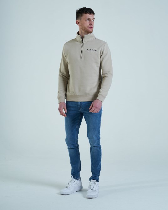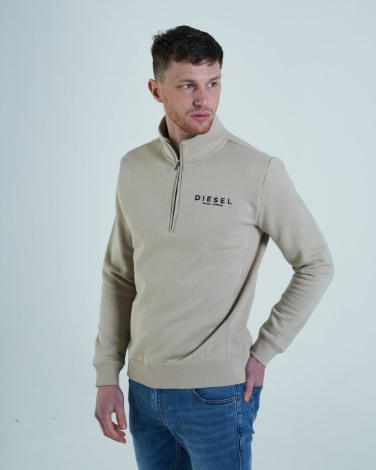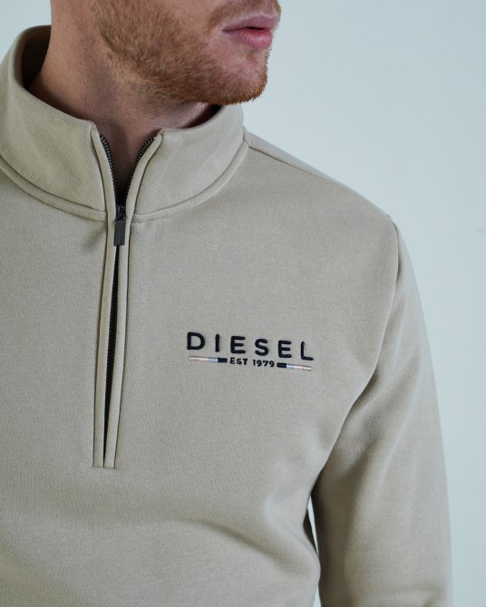 Trichterkragen Aus Bio-Baumwoll-Sweatfleece Für Herren Mit Metallreißverschluss. Paspeltaschen Vorne. Gesticktes Premium-Diesel-Logo Auf Der Brust Mit Gerippten Einsätzen An Den Seiten Für Leichtigkeit Und Komfort. Das Model Trägt M. Es Wird Empfohlen, Bei Ihrer Normalen Größe Zu Bleiben. Hauptteil: 55 % Bio-Baumwolle, 45 % Polyester