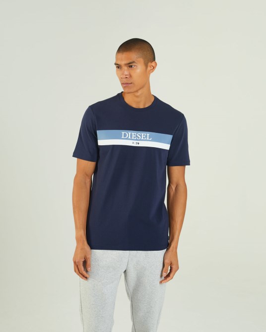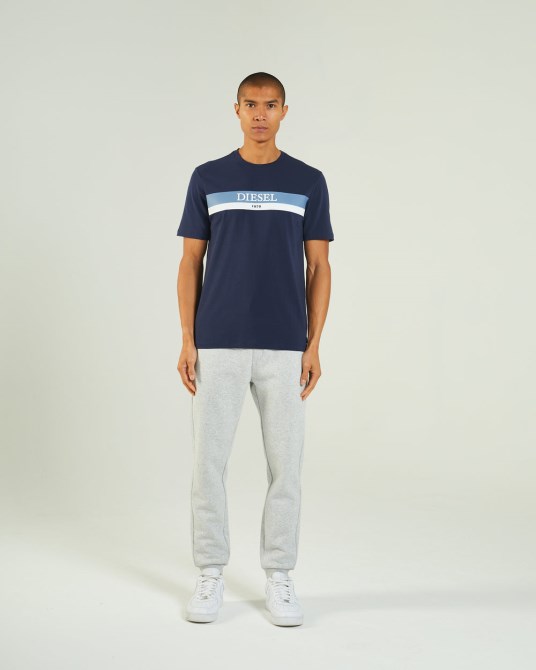 Herren-T-Shirt Aus Baumwoll-Stretch-Jersey Mit Superweicher Oberfläche. Stretch Für Komfort Und Bewegung Hinzugefügt. Diesel-Gummidruck Auf Der Brust. Kombinieren Sie Es Mit Unserem Hogan Jogger Für Einen Kompletten Look. Das Model Trägt M. Es Wird Empfohlen, Bei Ihrer Normalen Größe Zu Bleiben. 95 % Baumwolle / 5 % Elastan