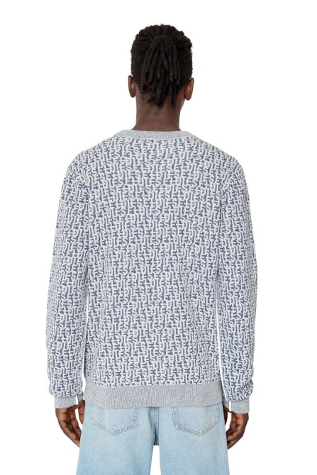 Mit Seinem Langen Blauen Farbton Und Den Kettennähten Ist Dieser Regular-Fit-Pullover Für Herren Eine Anspielung Auf Denim. Das Allover-Monogramm-Muster Von Diesel Ist Aus Boucl-Garn Jacquardgestrickt Und Verleiht Der Gekämmten Wollmischung Ein Haptisches, Dreidimensionales Finish.
