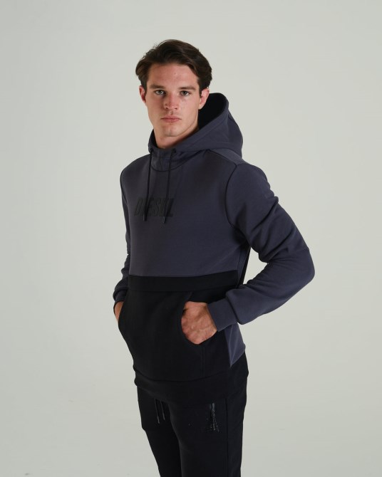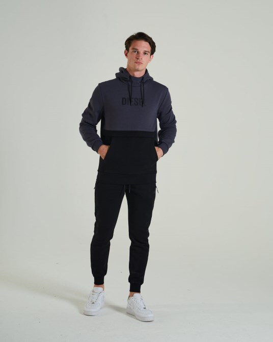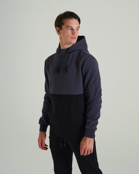 Herren-Hoodie Im Blockfarbendesign Mit Voll Funktionsfähiger Reißverschlusstasche An Der Taille Und Kängurutasche. Elegantes Nahtdetail Am Ärmel, Mit Verdeckter Tasche Am Unterarm. Gummiaufdruck Auf Der Brust Und Verstellbare Kapuze Mit Kordelzug.