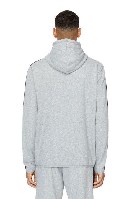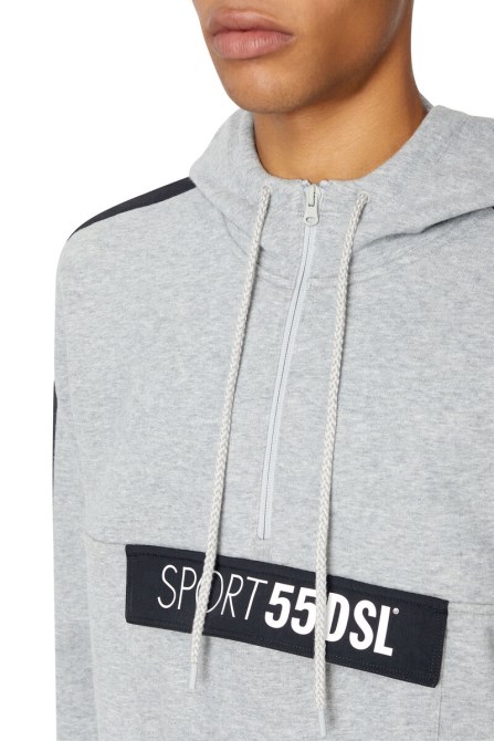 Diesel Sportkollektion. Herren-Hoodie Mit Halbem Reißverschluss Und Normaler, Leicht Konisch Zulaufender Passform Aus Loopback-Jersey Aus Einer Baumwollmischung. Der Stoff Hat Ein Weiches Pfirsichhautgefühl Und Ein Feuchtigkeitsableitendes Finish. Kontrastierende Crinkle-Besätze Betonen Die Ärmel Und Die Logo-Klappe An Der Tasche.